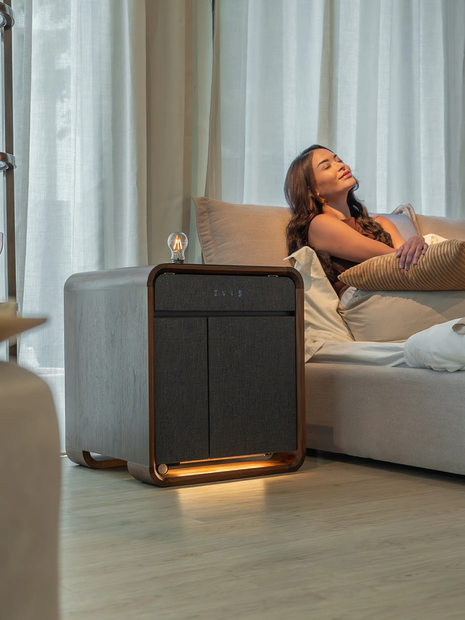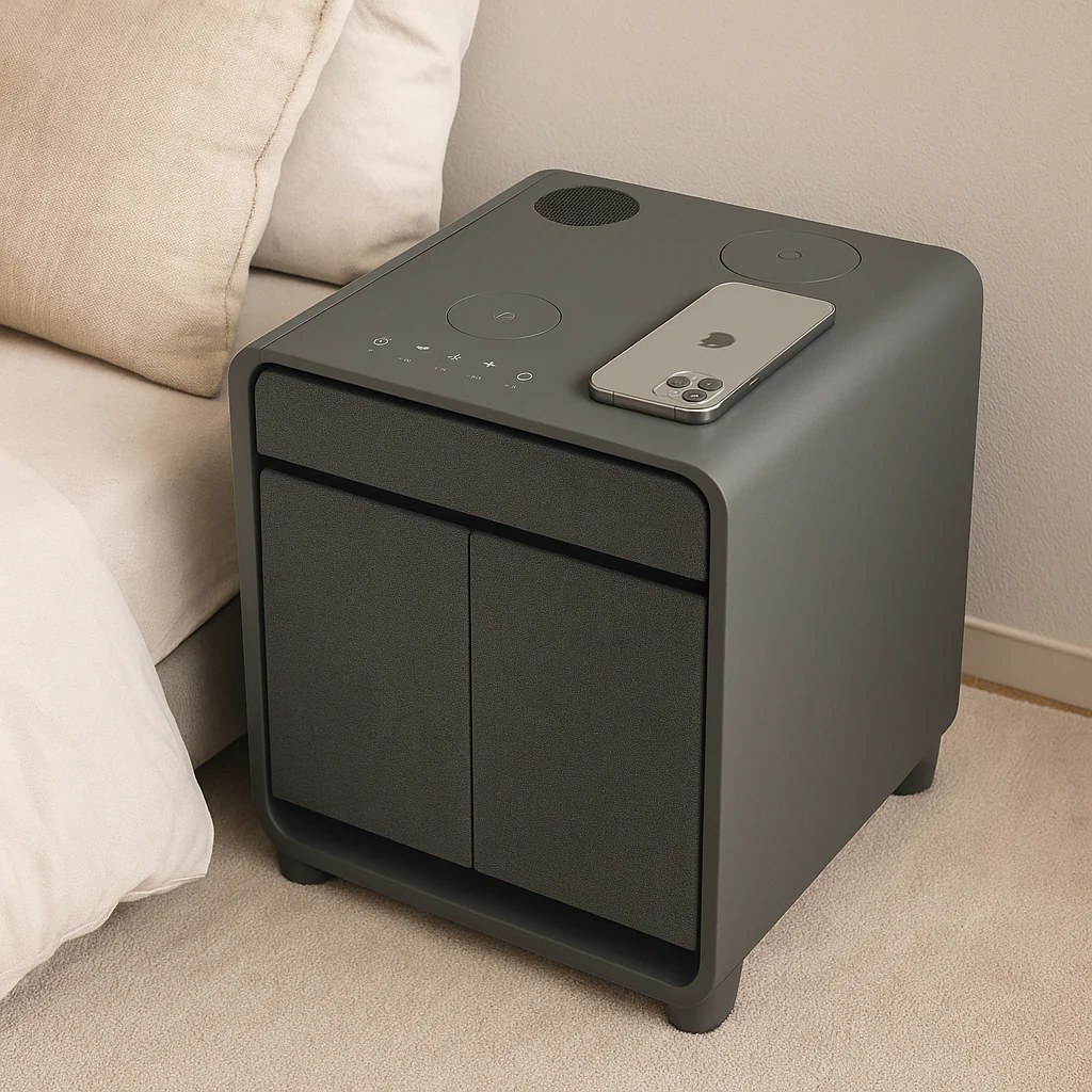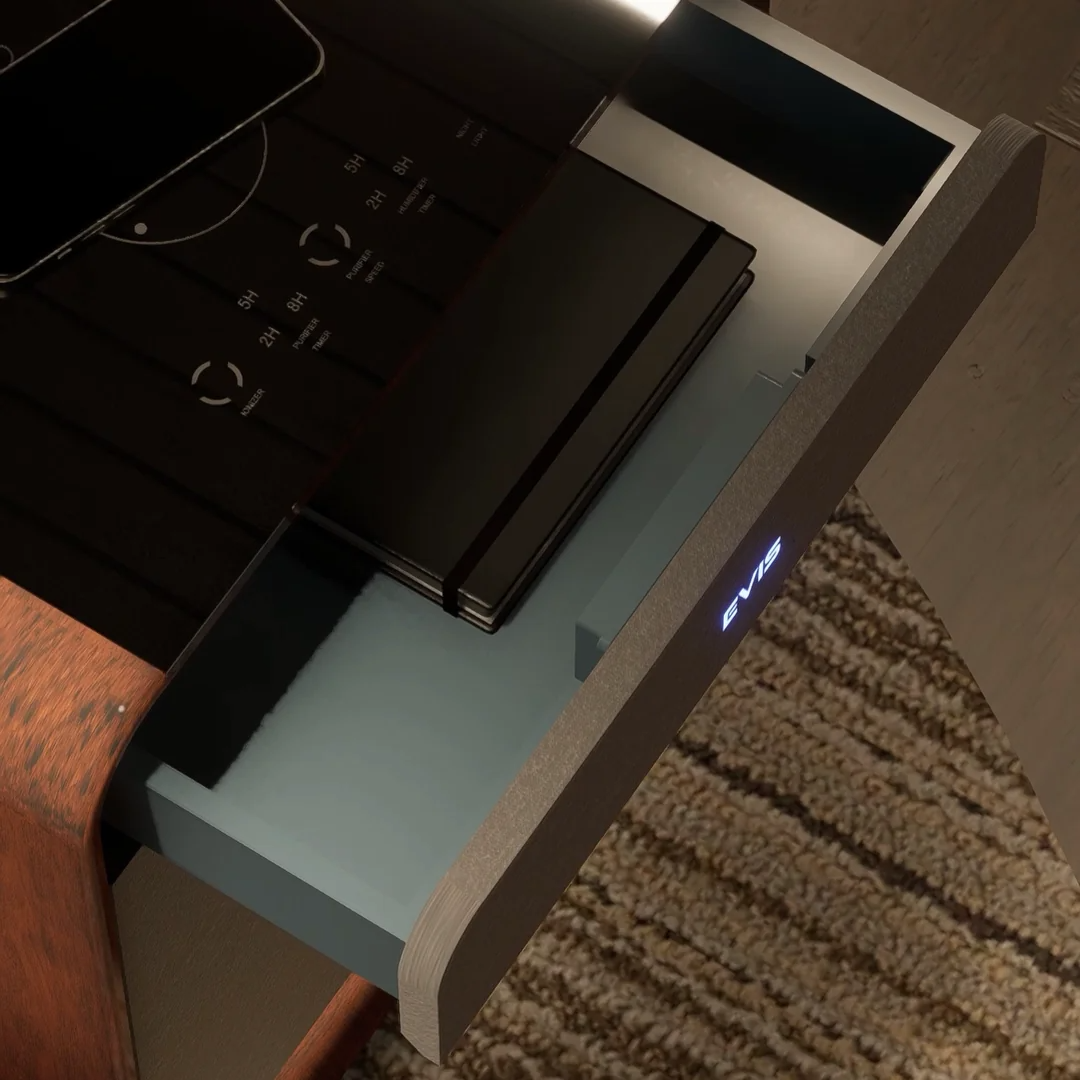 Discover the future of bedside living with the EVIS LuxeCube-an innovation that redefines comfort, convenience, and style. Designed to seamlessly integrate into your lifestyle, this smart cube does more than just hold your essentials. Crafted with meticulous attention to detail, the EVIS LuxeCube combines functionality with luxury making it a beautiful addition to any room. Experience the EVIS LuxeCube-where technology meets timeless design, and every feature is crafted with your comfort in mind.