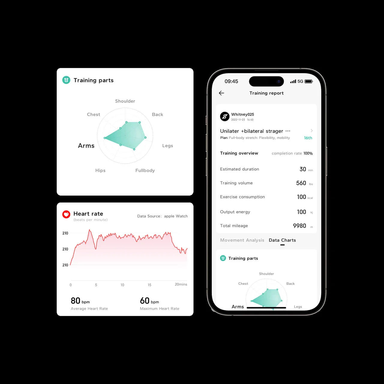 The ultimate all-in-one indoor fitness solution, offering 100kg of resistance at your fingertips. Featuring visualized workout tutorials, advanced data insights, and versatile training modes.