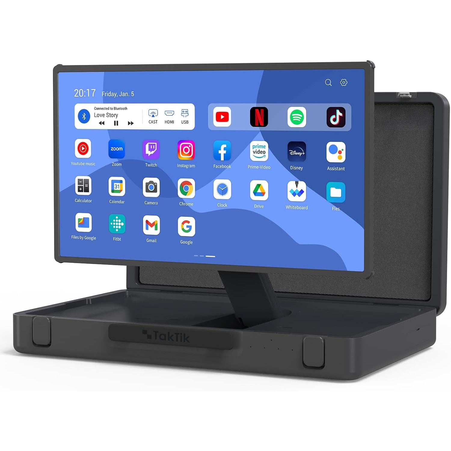 The Taktik Briefcase Smart Screen transforms your workflow. Its 27-inch touchscreen delivers crystal-clear visuals, while the 6800mAh battery keeps you productive on the go. Connect multiple devices seamlessly via USB, HDMI, or wireless. Durable, lightweight, and stylish, this briefcase screen is perfect for business trips, presentations, or mobile entertainment.