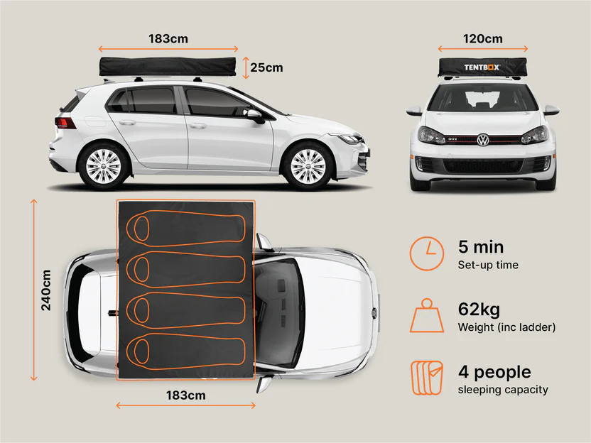 The TentBox Lite XL sleeps up to 4 people comfortably